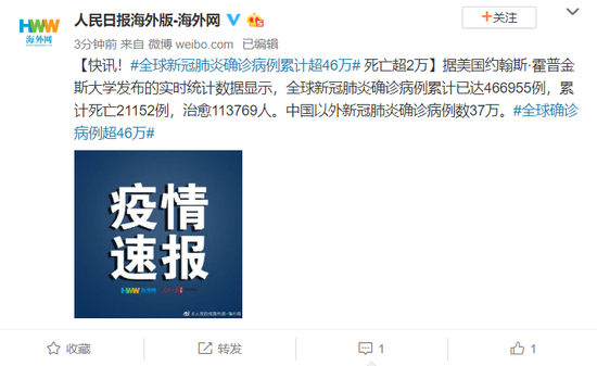 据美国约翰斯·霍普金斯大学发布的实时统计数据显示,全球新冠肺炎确诊病例累计已达466955例,累计死亡21152例,治愈113769人。中国以外新冠肺炎确诊病例数37万。