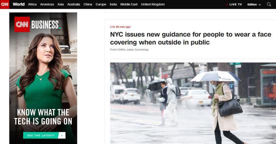 纽约市长督促民众出门戴口罩:可以是围巾 也可以