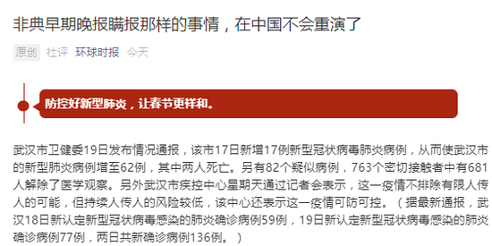国际舆论对武汉肺炎的关注在逐渐增加,国外的各种猜测性信息会通过各种途径传到国内。然而研究新型肺炎最权威的力量肯定在中国国内,有关方面只要及时、全面地公布信息,就完全能够做到主导相关的信息供给,不让网上对外部信息的片面转引误导了中国内地公众。