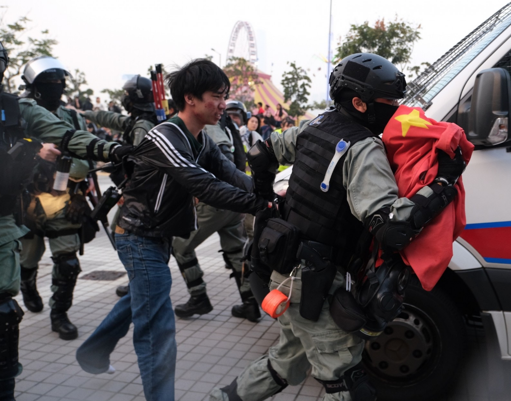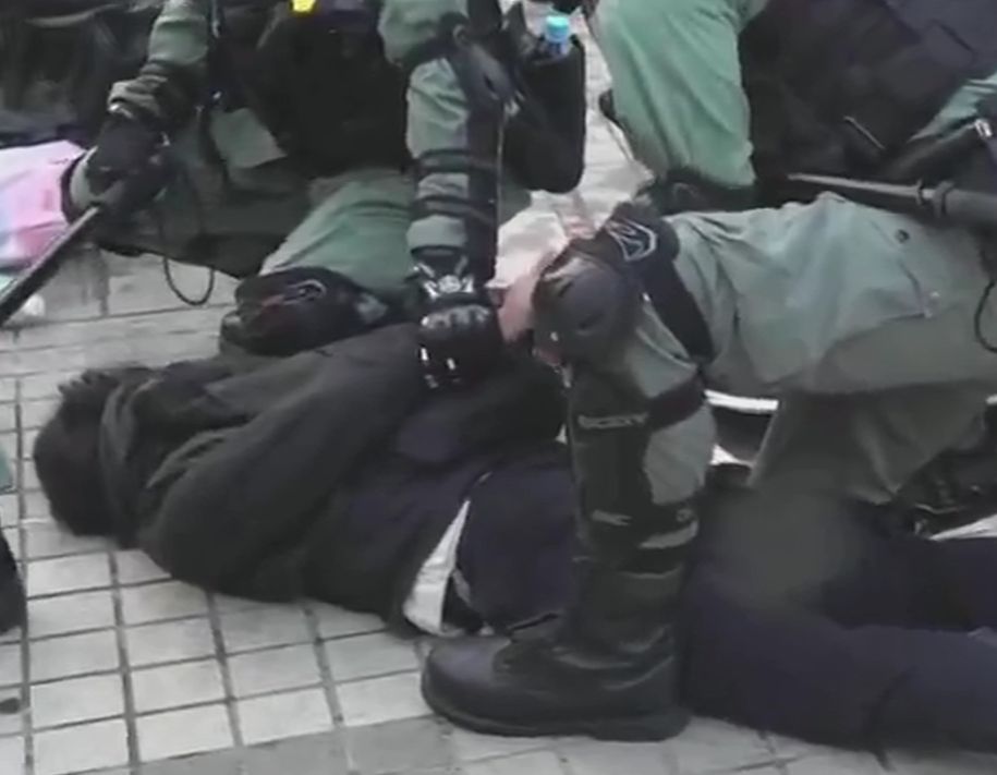 据报道,今天下午17时30分,有暴徒将附近香港大会堂外的五星红旗拆下丢在地上,大批防暴警员随即到场。据现场视频显示,警员到场先将五星红旗收起,随即将一名黑衣男子制服。报道称,警员当时共拘捕2名男子。