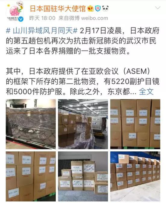 日本政府和民间此前已多次支援中国抗击疫情。“山川异域,风月同天”、“岂曰无衣,与子同裳”等一句句充满真情的诗词,同一批批防疫物资,戳中不少网友的心。