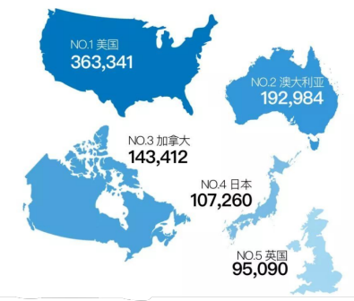 据2019中国留学生白皮书统计,中国有在美留学生近37万,英国近10万,日本10万。