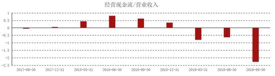 香梨股份三季度财报显示,前三季度,该公司经营活动产生的现金流量净额为-1511万元,同比下降-206.59%,销售现金比率为-226.98%,这意味着每元营收对应近2.27元的经营活动现金净流出额。