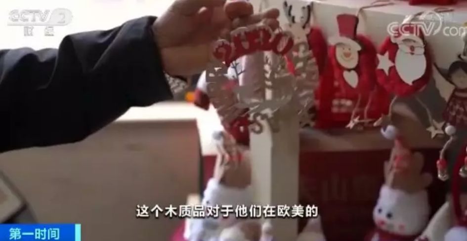 浙江省东阳市某圣诞工艺品有限公司总经理杨宜斌:这个木质品对于他们在欧美的,非常愿意接受,因为第一环保,第二价格低廉。我们货过去了,他们接受度非常大。