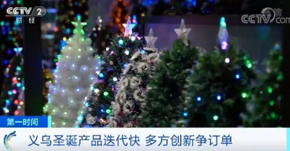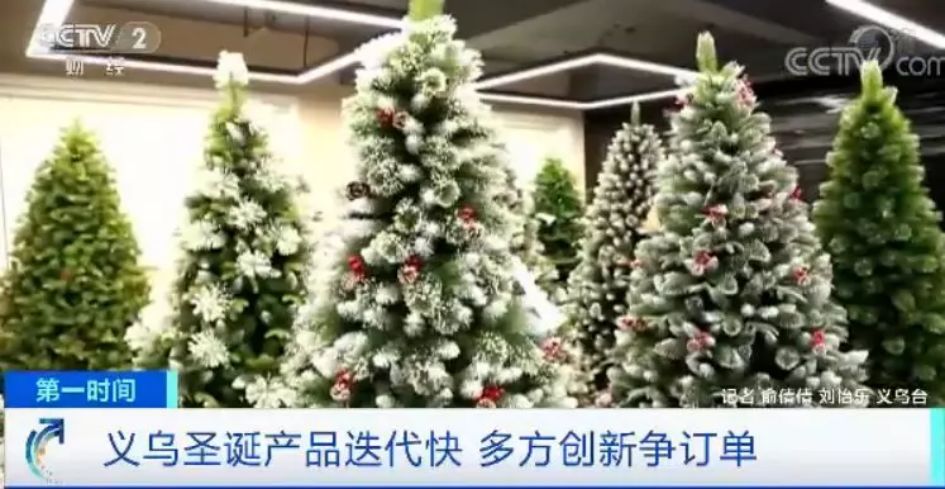在义乌一家圣诞树工厂,摆满了即将寄送给各国客户的样品,负责人曾富海告诉记者,虽然今年圣诞节还没过去,但是他们已经投入了明年新产品的设计开发和打样。