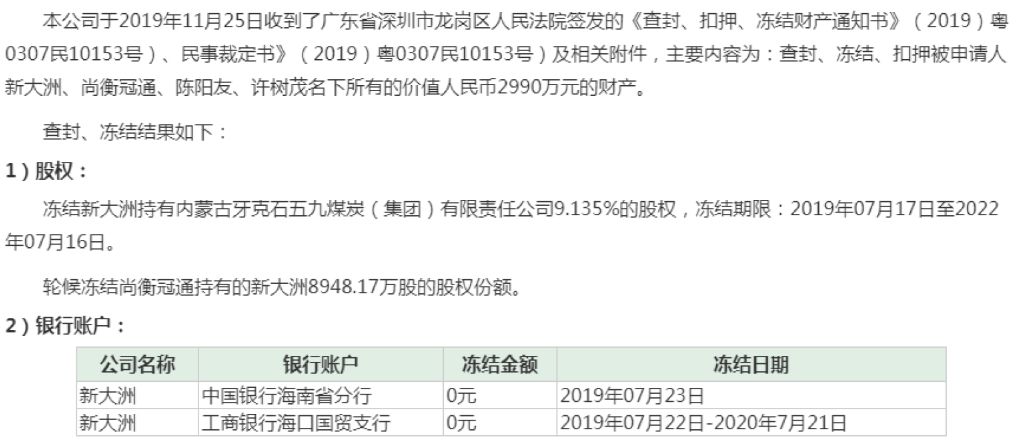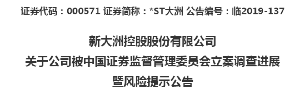 其次,*ST大洲目前还在被立案调查过程中。今年1月11日,公司收到中国证监会《调查通知书》(编号:琼调查字2019001号),因公司涉嫌信息披露违法违规,对公司进行立案调查。