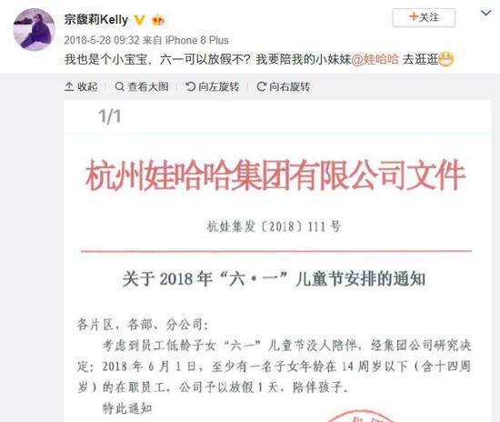 去年六一,她一改往日凌厉的形象,首次利用微博营销做互动,发布内容“我也是个小宝宝,六一可以放假不?我要陪我的小妹妹@娃哈哈去逛逛”。