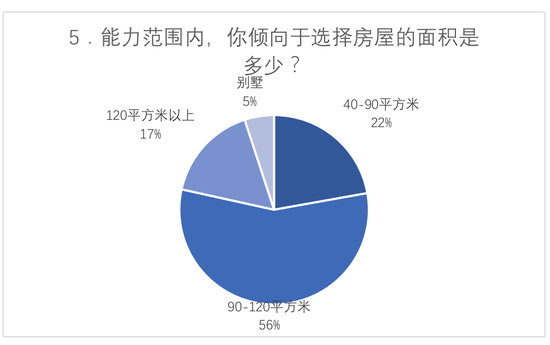 在能力范围内,《报告》显示,56.26%的受访者倾向于选择90~120平方米大小的房源,该房源通常被认为是刚改房源。