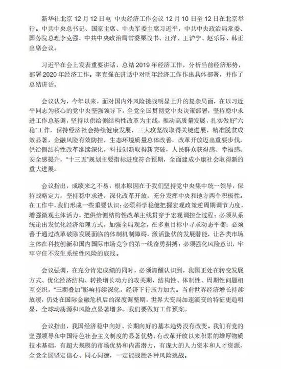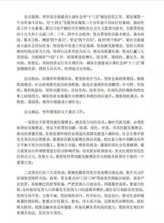 9、房地产依然提的很少,“房住不炒”绝不动摇。2020年很多人期待地产放松,但这次表述和去年几乎没有变化,还首提“三稳”(地价、房价、预期),定调还是打击炒房投机,明年不会全国性的放松,但个别区域会有微调,类似今年的深圳、长沙、成都。
