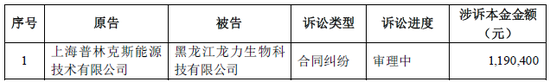 ST龙力:新增119万合同纠纷诉讼 8案件已生效