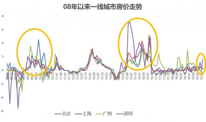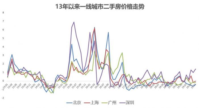 从历史数据来看,深圳新房与二手房的价格上涨周期的开启时间和峰值时间一般要早于其他一线城市,这被认为与深圳供求关系更紧张有关。