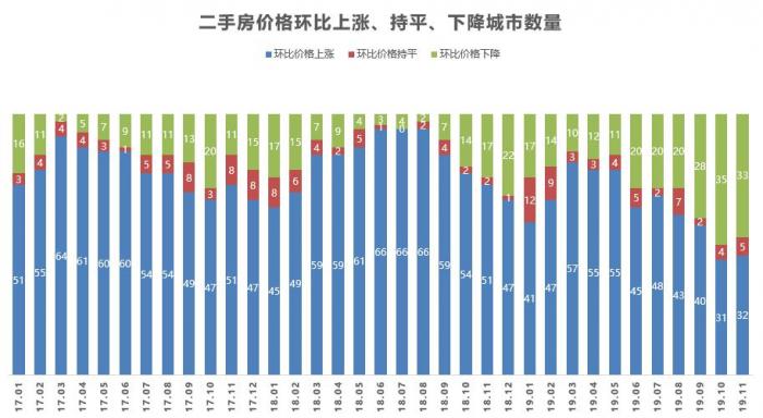 不管是新房还是二手房,价格下跌的城市数量都处在相对高位,市场整体状况趋稳。