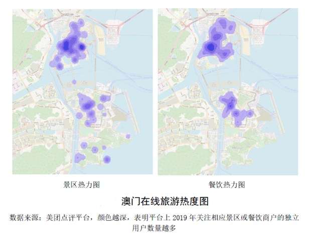《报告》中的澳门旅游热力图显示,澳门大三巴及周边地区最受关注。大三巴牌坊是澳门标志性建筑物之一,在内地游客中知名度最高,周边就餐选择也很丰富,形成了以大三巴为中心,覆盖恋爱巷、玫瑰圣母堂等众多景点的旅游资源集聚地带。