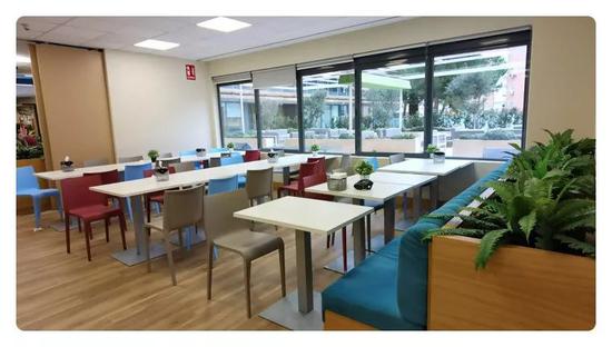 美味的中餐、现做的面食、享誉世界的海鲜饭、每周一换的国际餐、铁板烧,还有健康的沙拉吧,马德里员工餐厅中西融合国际范,需求覆盖你我他,胃和心也建立起了全联接。餐厅还设有咖啡吧和露台花园区,在地中海的阳光中一起“一杯咖啡吸收宇宙能量”。美食和阳光满溢的西班牙,在餐厅随时享有。