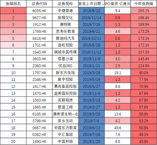 港股新股破发率59%:阿里集资夺冠 中烟香港涨幅