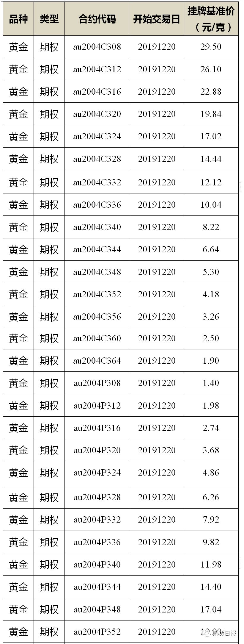 附表:上海期货交易所黄金期权合约挂牌基准价