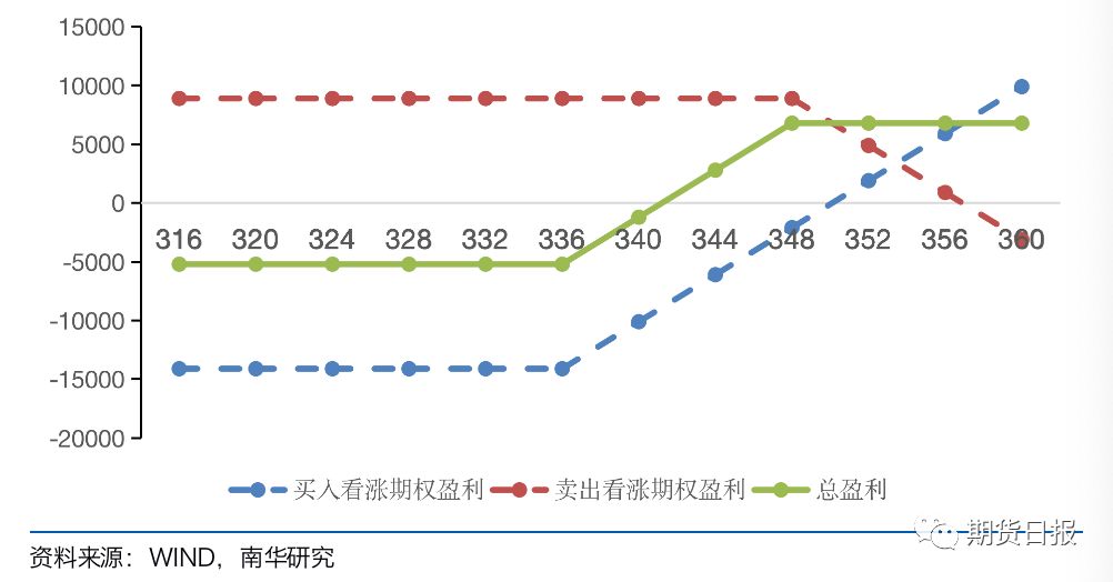 该策略依据未来长时段的方向性判断,认为明年黄金价格会在全球经济压力加大的背景下受通胀预期与负利率债券规模预期的影响而走强。建议买入平直AU2006C336合约,卖出虚2或3档虚值合约,如AU2006C348合约。建仓成本预计5.21元/克,保证金预计17500元,最大收益6790元,最大亏损5210元,盈亏比1.3。