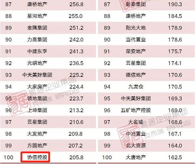 从可参考的克而瑞最新数据看,前11个月,协信实现全口径销售额205.8亿元,在全国排名第100位,而权益销售额不在百强之内,第100强大唐地产162.5亿元。