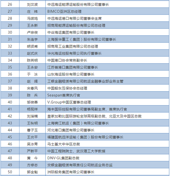 据悉,“中国航运百人榜”于2014年12月首次发布,并受到包括国家交通主管机构、航运业内人士、权威媒体和资本市场的广泛关注。榜单以践行国家战略为指引,以中国对世界航运的贡献为立足点,充分挖掘符合新时代航运业发展的各类别、各层次航运人。