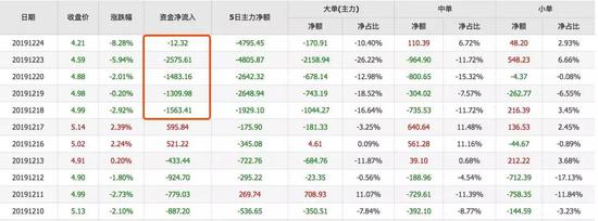 时间财经注意到,过去两个交易日(12月20日和12月23日)新华联股价分别下跌2%和6%,主力资金流出净额也在公告发布前的数个交易日大幅增加,似乎有“聪明资金”先行离场。