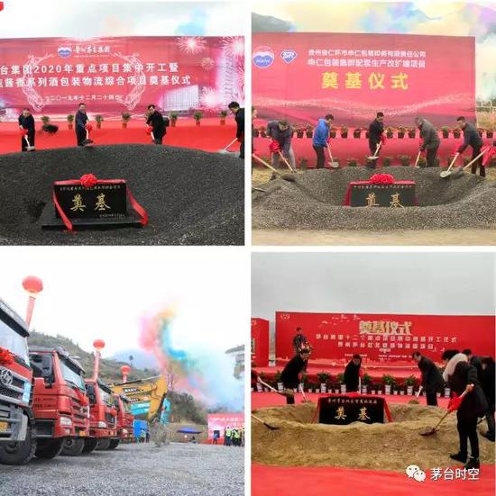 12月24日上午,茅台集团2020年重点项目集中开工暨8万吨酱香系列酒包装物流综合项目奠基仪式在仁怀市坛厂街道举行。