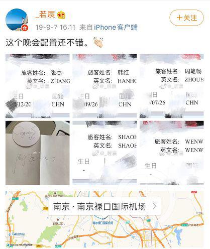 这样的乘机记录曝光后,“超侧卫”推测出张杰等明星是2019年9月7日搭乘国航CA1561次航班从北京飞往南京,“通过微博不仅能知道张杰、韩红、周笔畅三人抵达南京了,而且他们还没出机场你就已经知道他们坐在什么位置!”。