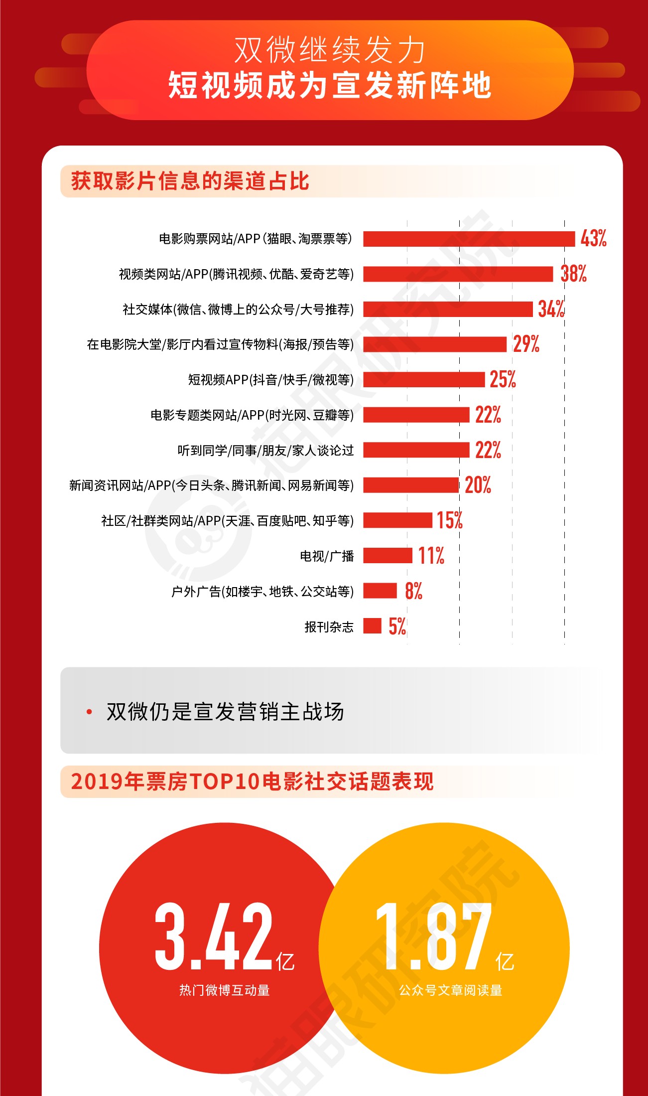 2019年,短视频成为宣发新阵地。通过现场娱乐、短视频、视频、电影、文娱媒体、剧集、音乐、艺人KOL等全文娱各产业链覆盖,猫眼媒体矩阵成为影视项目宣发的重要阵地。其中,“猫眼电影”已成为抖音电影类账号No1,“猫眼剧综团”、“猫眼大明星”和“有只小婉”等账号,全部进入抖音娱乐媒体TOP10。以“小小莎老师”为代表的的文旅类KOL矩阵获得了抖音文旅类月榜第一名。据数据显示,目前猫眼视频MCN账号体系全网粉丝量超过2亿,月度阅读量超过1亿人次。