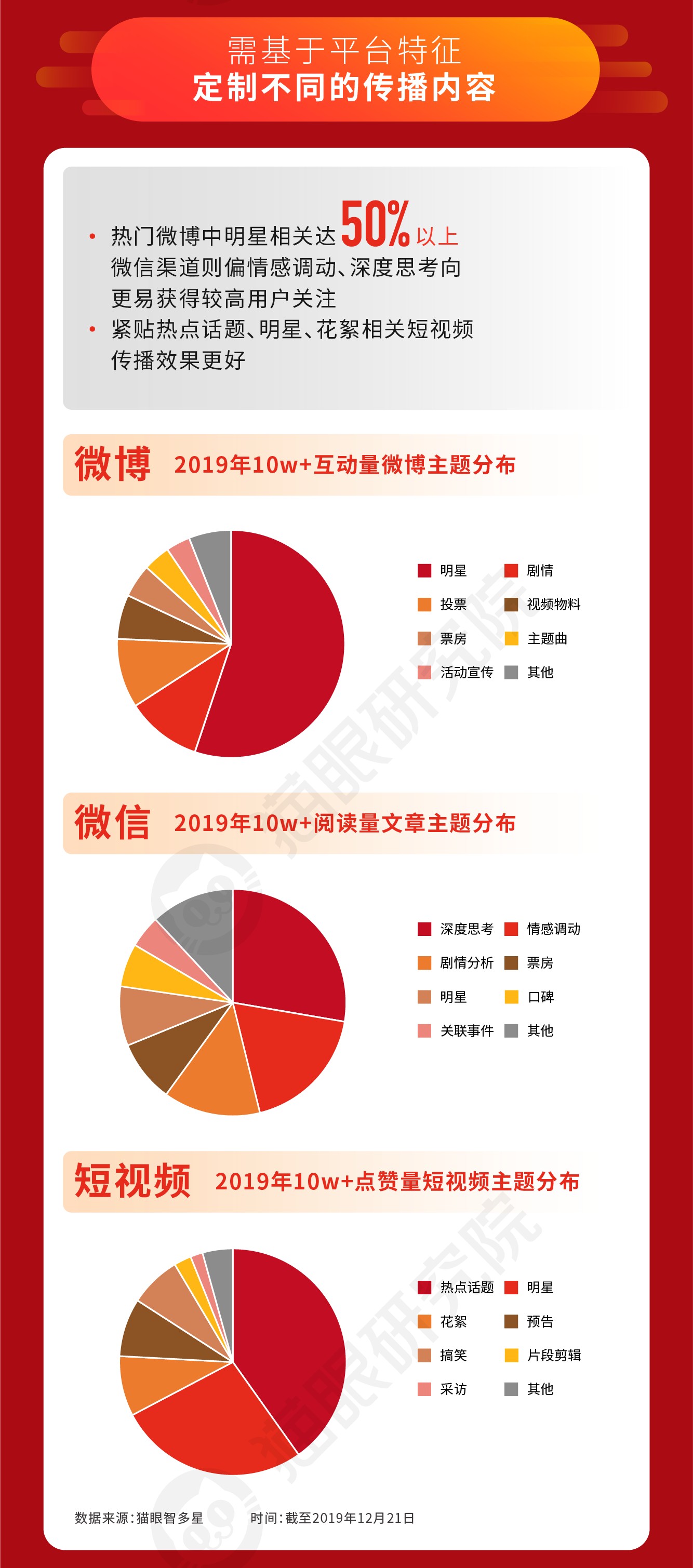 以猫眼为例的一系列动作可以看出,宣发过程中行业参与者也正向基于数据能力锁定电影核心观众,并进行精准投放从而助力影片收获高口碑和高票房转型。基于平台之间的不同特征,在对基础数据做到足够分析,影片宣发也较以往更为精准。