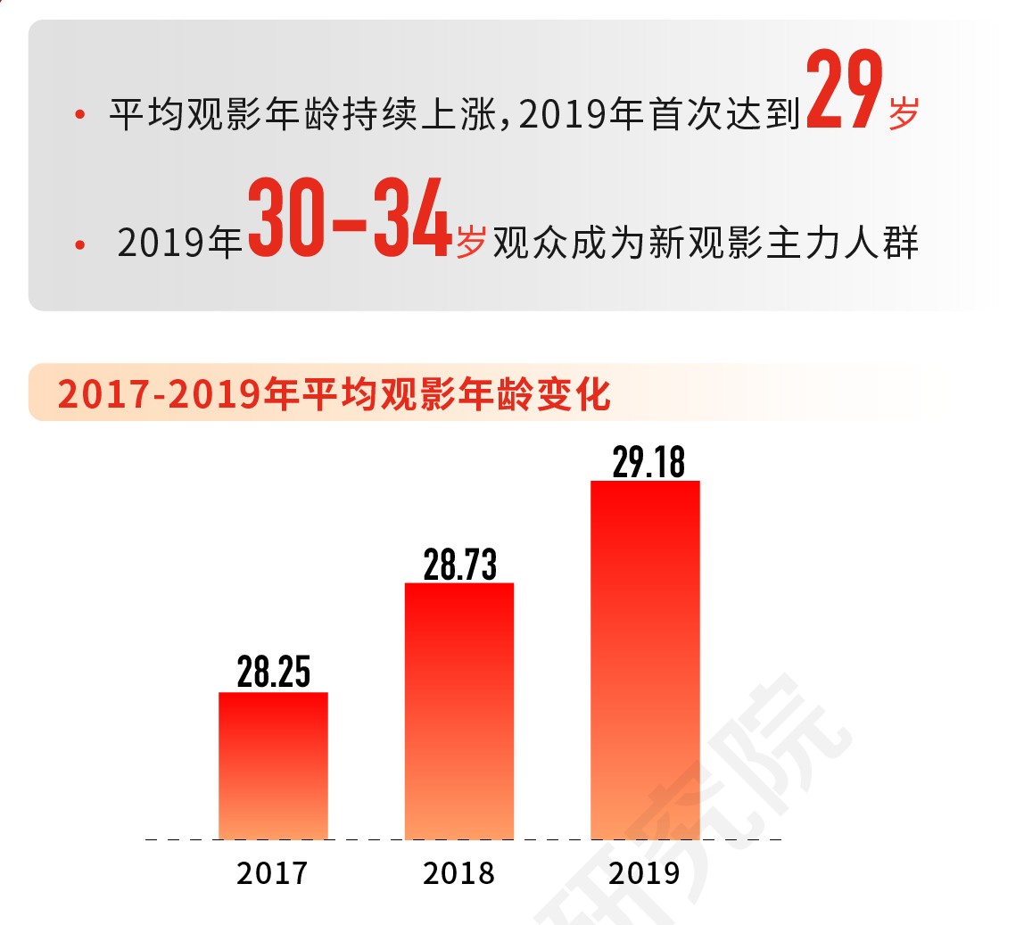 在观众组成方面,观影观众的平均年龄进一步上涨,下沉市场也进一步释放增长动力。据《2019年中国电影市场数据洞察报告》显示,2019年平均观影年龄首次达到了29岁,30-34岁观众成为新观影主力人群。