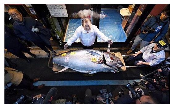 一条金枪鱼1246万元!日本鱼市新年拍出史上第二