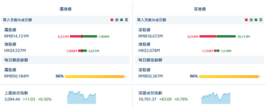 深港通资金流向方面,深股通净流入15.54亿,港股通(深)净流入为3.59亿。