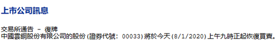 云铜股份:接获针对公司的清盘呈请 8日复牌
