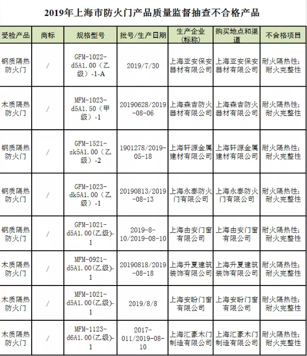上海抽查35批次防火门 8批次产品耐火性能不合格