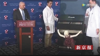 美国消费品安全委员会展示宜家该款抽屉柜在未固定情况下容易倾倒,威胁儿童安全。图/资料图片