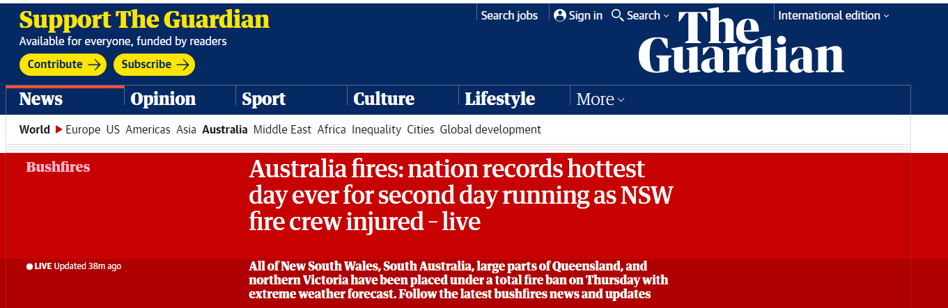 澳大利亚连续两天创高温记录 新州再进入紧急状