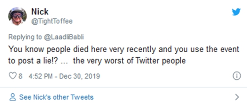 “你知道最近有人死于这里的火山喷发,你就利用这个事散布谎言!?…最糟糕的推特用户”↓