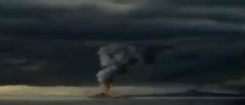 RT描述说,这则令人难以置信的“戏剧性”视频片段始于一个俯瞰海洋全景的视角,火山喷发的画面也“正好”被完美地定位在了镜头中间。↓