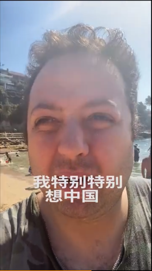 [环球网报道 实习记者 刘跃勍]近日,一段@萌叔大卫老师在社交媒体上传的视频迅速走红。在视频中,@萌叔大卫老师英文中夹杂着些许中文,吐槽自己从中国回到澳大利亚之后感受到的诸多不便。他在视频中说道,“你们中国人真的特别幸运”,“我特别特别想中国”。