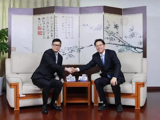 12月7日下午,国务院港澳办主任张晓明在国务院港澳办会见香港特别行政区政府警务处处长邓炳强一行。