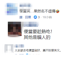 “便当英……果然名不虚传。”“便当要趁热吃!其他都是骗人的。”“大家都去吃便当就好,票不投蔡英文。”