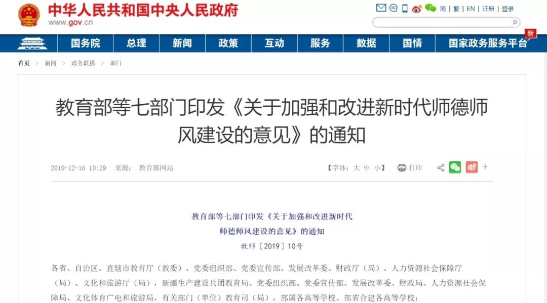 就在同一天,教育部等七部门联合印发《关于加强和改进新时代师德师风建设的意见》的通知。其中提出的总体目标是,计划经过5年左右努力,建立起完备的师德师风建设制度体系。