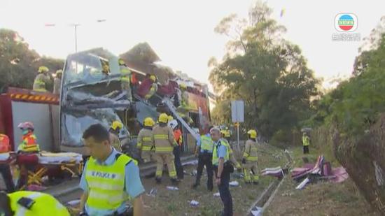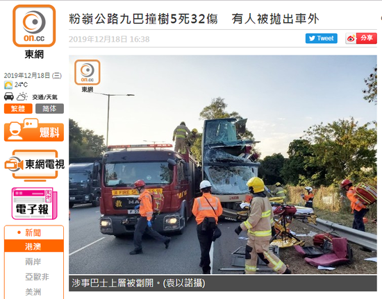 香港一辆巴士撞树致5人死亡 30余人受伤(图)