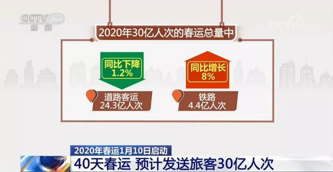 30亿人次旅客中,道路客运24.3亿人次,同比下降1.2%;铁路4.4亿人次,同比增长8%;民航7900万人次,同比增长8.4%;水运4500万人次,同比增长9.6%。高铁、民航、私家车等出行方式在春运中的占比持续上升。