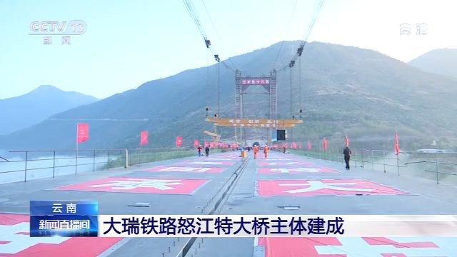 经过历时五年多的施工,昨天(12月30日),云南大理至瑞丽铁路怒江特大桥最后一片钢梁精准就位,大桥主体工程建设顺利完成,标志着大理至瑞丽铁路重难点工程建设取得重大突破,为全线早日建成通车奠定了基础。