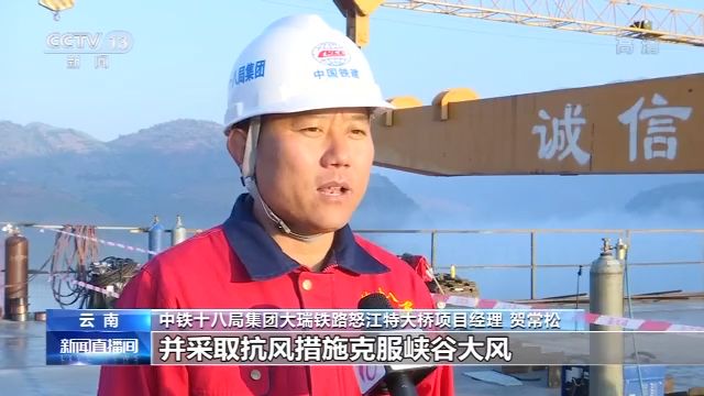 中铁十八局集团大瑞铁路怒江特大桥项目经理 贺常松:对全桥进行监控,并采取抗风措施克服峡谷大风、高温差对桥梁变形的影响,实现大桥主体顺利建成。