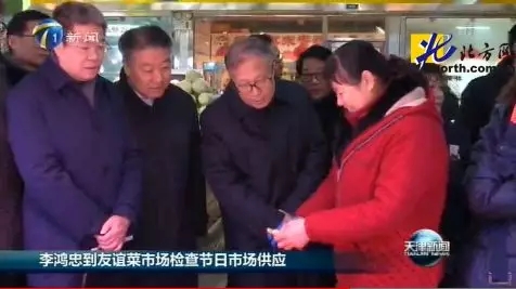 据《天津日报》报道,元旦上午,天津市委书记李鸿忠轻车简从,随机来到河西区友谊菜市场,调研检查节日期间市场供应情况。