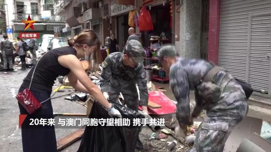 驻军官兵连续奋战三天三夜,帮助澳门群众恢复生产生活。
