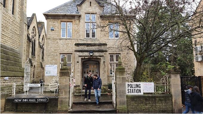 牛津市中心的一个投票站。