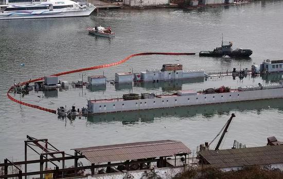 12月15日晚间,一座二战前建造的PD-16号浮船坞在塞瓦斯托波尔港沉没,其搭载的退役潜艇B-380号也跟着侧翻了。