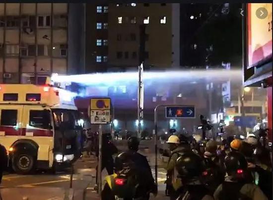 但入夜后,中环、湾仔及铜锣湾等多区仍然有一些黑衣人堵路,警方在晚上出动水炮车和装甲车驱散。